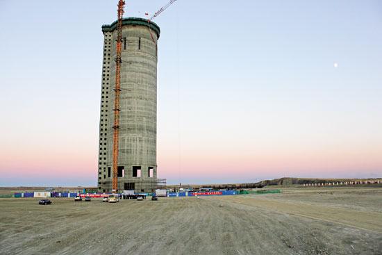 由于尿素造粒塔造粒工藝需求,其塔頂高度普遍 較高,部分塔頂除塵裝置排放口距地面超過100m,且由于塔形結(jié)構(gòu),其頂部平臺(tái)空間小,檢修不便、風(fēng) 力載荷大。造粒工藝?yán)鋮s風(fēng)量較大,其每1萬(wàn)t的年產(chǎn)能,對(duì)應(yīng)冷卻煙氣風(fēng)量為1.5萬(wàn)~ 2.0萬(wàn)m3/h。一 座40萬(wàn)t/a規(guī)模的尿素造粒塔高溫天氣下冷卻風(fēng)量達(dá) 到80萬(wàn)m3/h,較端高溫高濕情況下其冷卻風(fēng)量還可能更高。